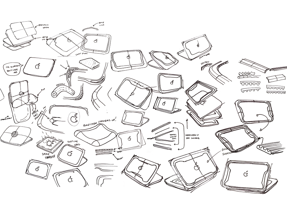 Thule wanted to build a relationship with Apple, so we began by building the first MacBook Bumper. We investigated the typical damage points and causes for MacBooks along with various methods of creating protection. We focused and iterated on a mix of durability, deflection, and absorption.